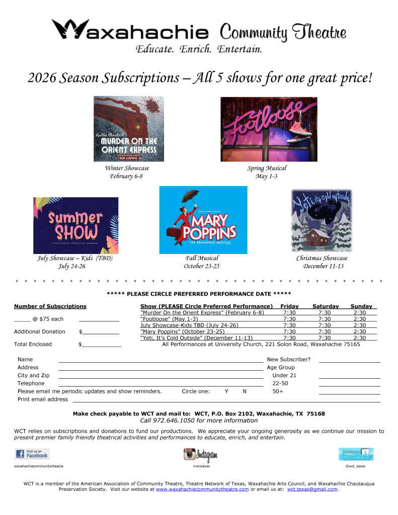 Click here to order online or click on download button below to print the order form and mail in your reservation.